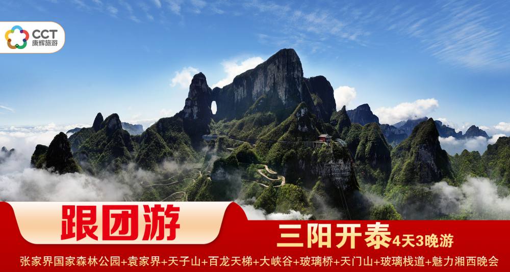 上午行程:早餐后乘車前往被譽(yù)為世界最美的空中花園與天界仙境的張家界第二個(gè)國(guó)家森林公園—【張家界天門山國(guó)家森林公園】(門票已含)乘世界最長(zhǎng)索道(全長(zhǎng)7.5公里單程30分鐘)體驗(yàn)騰云飛翔的刺激震撼,28分鐘到達(dá)山頂;到凌霄臺(tái)俯瞰張家界市區(qū)勝景,領(lǐng)略山水長(zhǎng)卷的磅礴氣勢(shì);走鬼谷棧道,挑戰(zhàn) “敢”覺(jué);體驗(yàn)縱橫學(xué)玄妙;拜求兒洞,求子得子,求福得福;珙桐園乘坐世界最長(zhǎng)穿山扶梯直達(dá)天門洞景區(qū)(穿山扶梯及鞋套需已贈(zèng)送)登999級(jí)上天梯至世界最高天然穿山溶洞“天門洞”體驗(yàn)自然造化的神奇和震撼沖擊。天門山有著獨(dú)特的喀斯特地貌,形成唯美的空中原始花園,被譽(yù)為張家界的新傳奇;