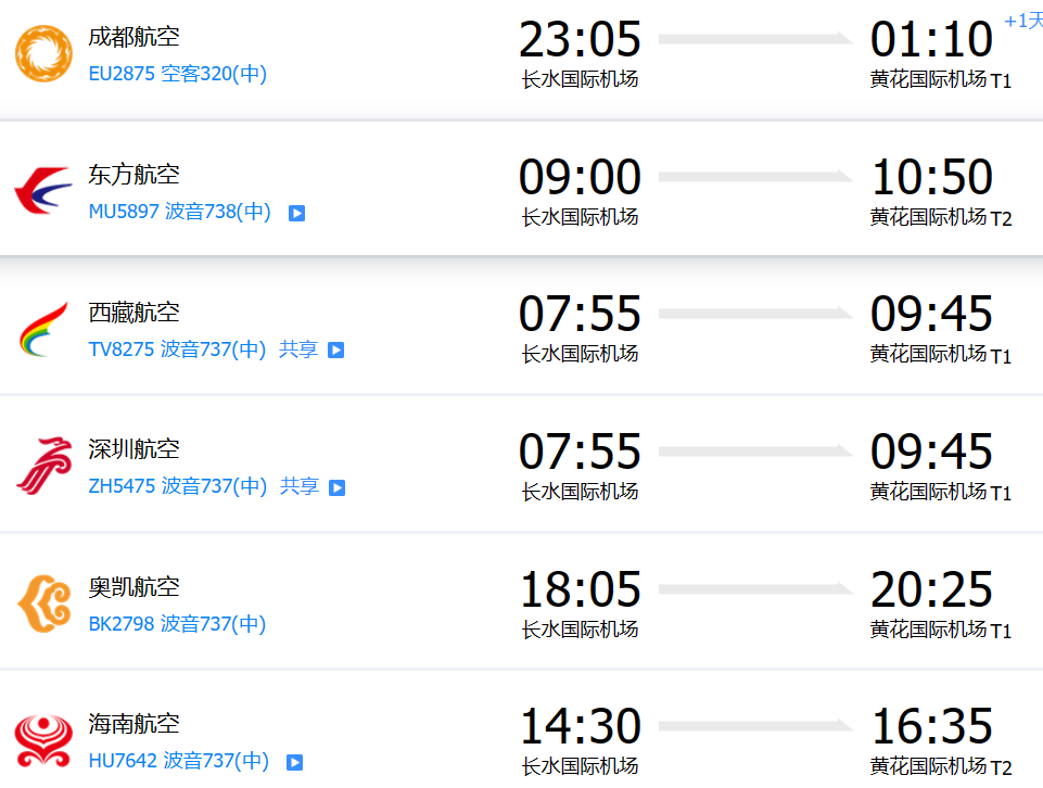 昆明長水國際機場沒有直飛張家界荷花機場的航班,有直飛長沙黃花機場的航班,具體參考如下: