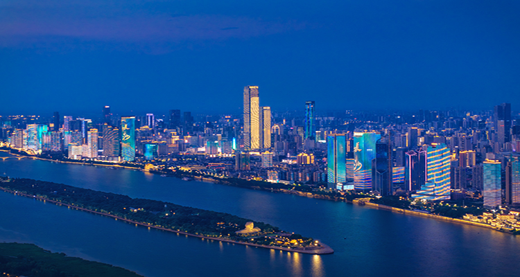 長沙被不同漸次的藍(lán)包裹