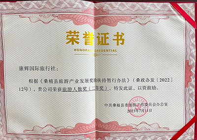 近年來康輝旅行社獲取的相關(guān)榮譽(yù),僅少部份參考: