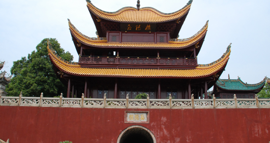 閱軍樓在兩晉、南北朝時(shí)被稱(chēng)為巴陵城樓,到唐朝時(shí)期方始稱(chēng)岳陽(yáng)樓。