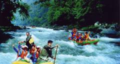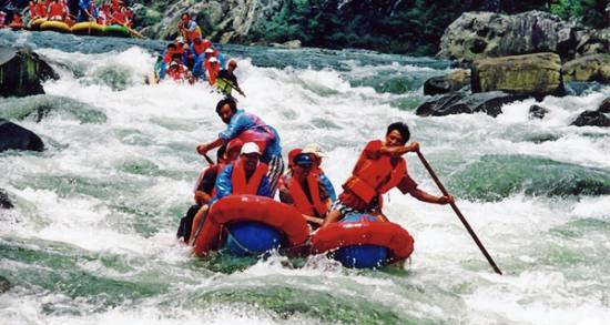 被譽(yù)為“中國(guó)生態(tài)第一漂”,位于東江湖最南端的黃草鎮(zhèn)境內(nèi),全程26千米。從龍王廟起漂點(diǎn)到燕子排終漂點(diǎn)整個(gè)落差75米,急灘108個(gè),漂流河道兩巖有保存比較完好的原始次森林,奇巖怪石林立,古樹(shù)遮天蔽日,老藤攀崖附壁,飛鳥(niǎo)跳躍枝頭。東江漂流以其灘多浪急落差大、水碧石怪魚(yú)奇怪、兩岸森林植被佳而 聞名,是國(guó)內(nèi)目前最具探險(xiǎn)的融歷險(xiǎn)、探幽、獵奇、拾趣為一體的漂流去處。