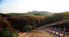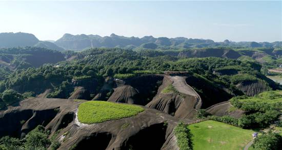 飛天山丹霞地貌區(qū)南西距郴州市25公里,面積48平方公里。屬紅巖丘陵地貌,地貌被大自然鬼斧神工雕刻成似人、似獸、似物、似禽,栩栩如生。主要丹霞地貌類型為寨(堡),它們坐落有序,寨身陡峭,紅崖赤壁,寨頂綠樹當(dāng)華蓋。不少寨頂溶蝕成渾圓形洼坑。