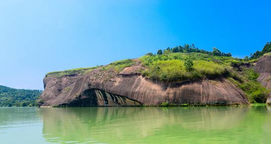 沿江兩巖“丹霞翠遙斷,巖石架空來”。一路順江飄流,只見丹峰林立,紅巖綠水,怪石幽洞,古木吐翠,竹海茫茫。一年四季綠葉、三季花香,繪成罕見的“四面青山列翠屏”、“草木花光盡是春”的奇妙丹霞地貌景觀。